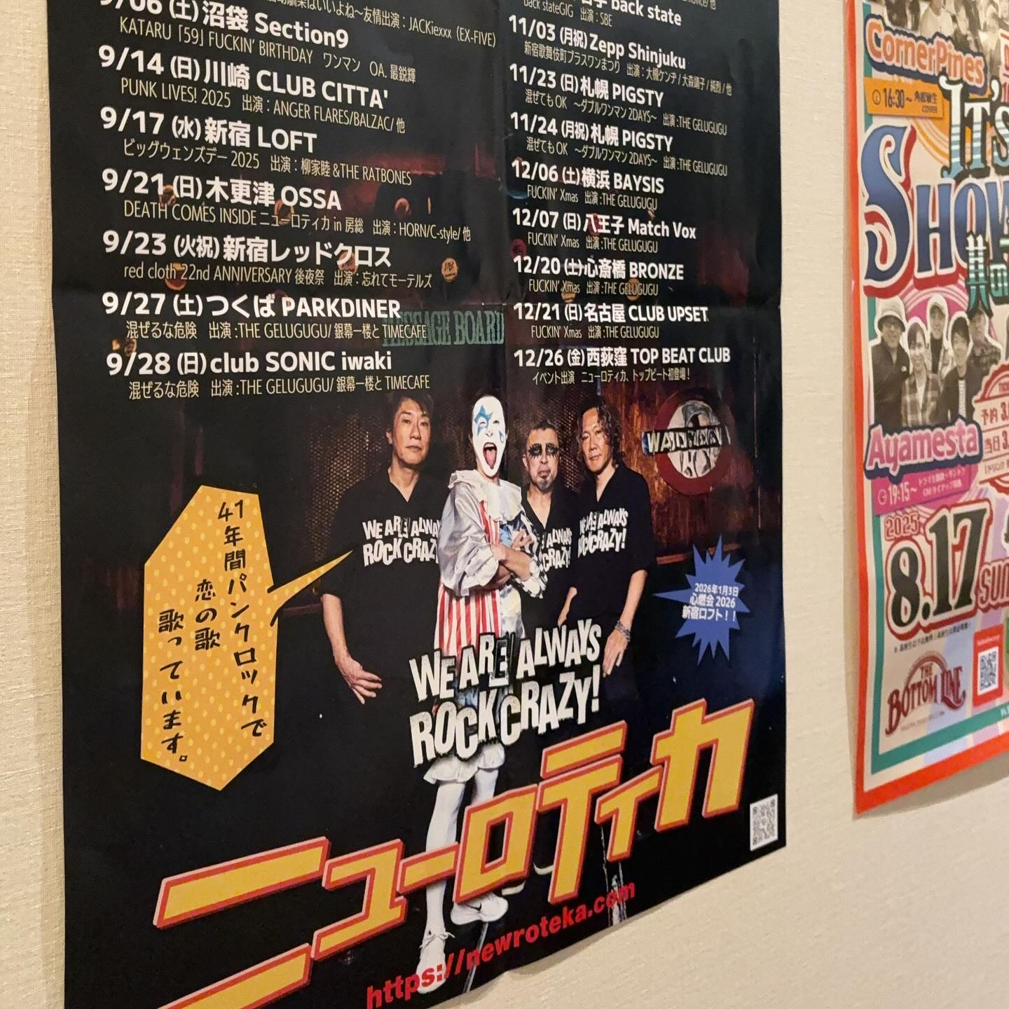 同世代バンドといっても過言ではない!(店長とね)ニューロティカさんからポスターをいただきました❣️名古屋でのライブもありますよー!俺たちいつでもロックバカ!